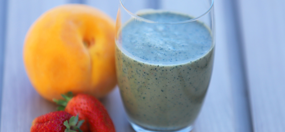 Lave os frutos, descasque o pêssego e corte-o em pedaços, coloque todos os ingredientes numa liquidificadora bem potente e triture por 1 minuto! Sirva de seguida.